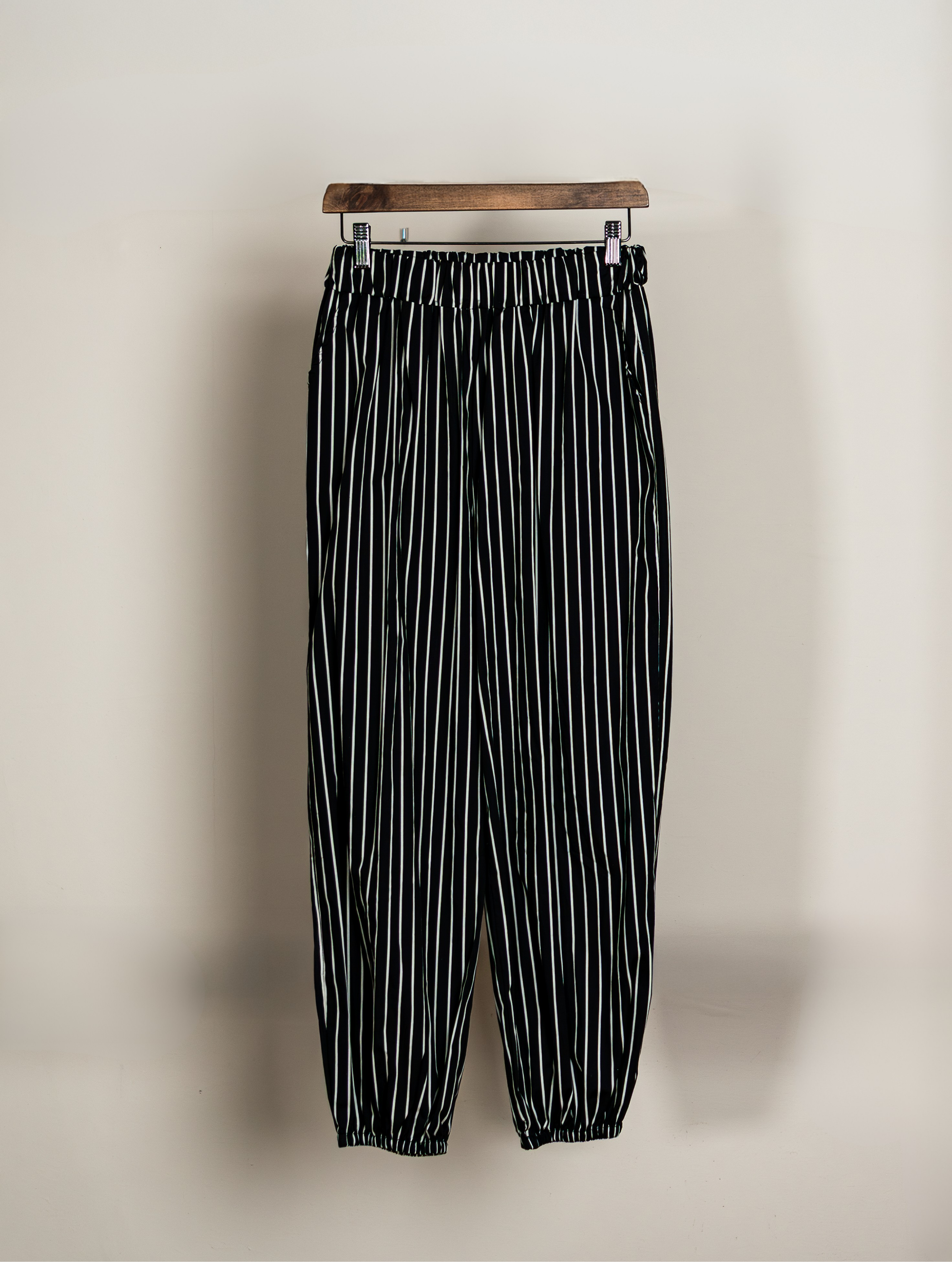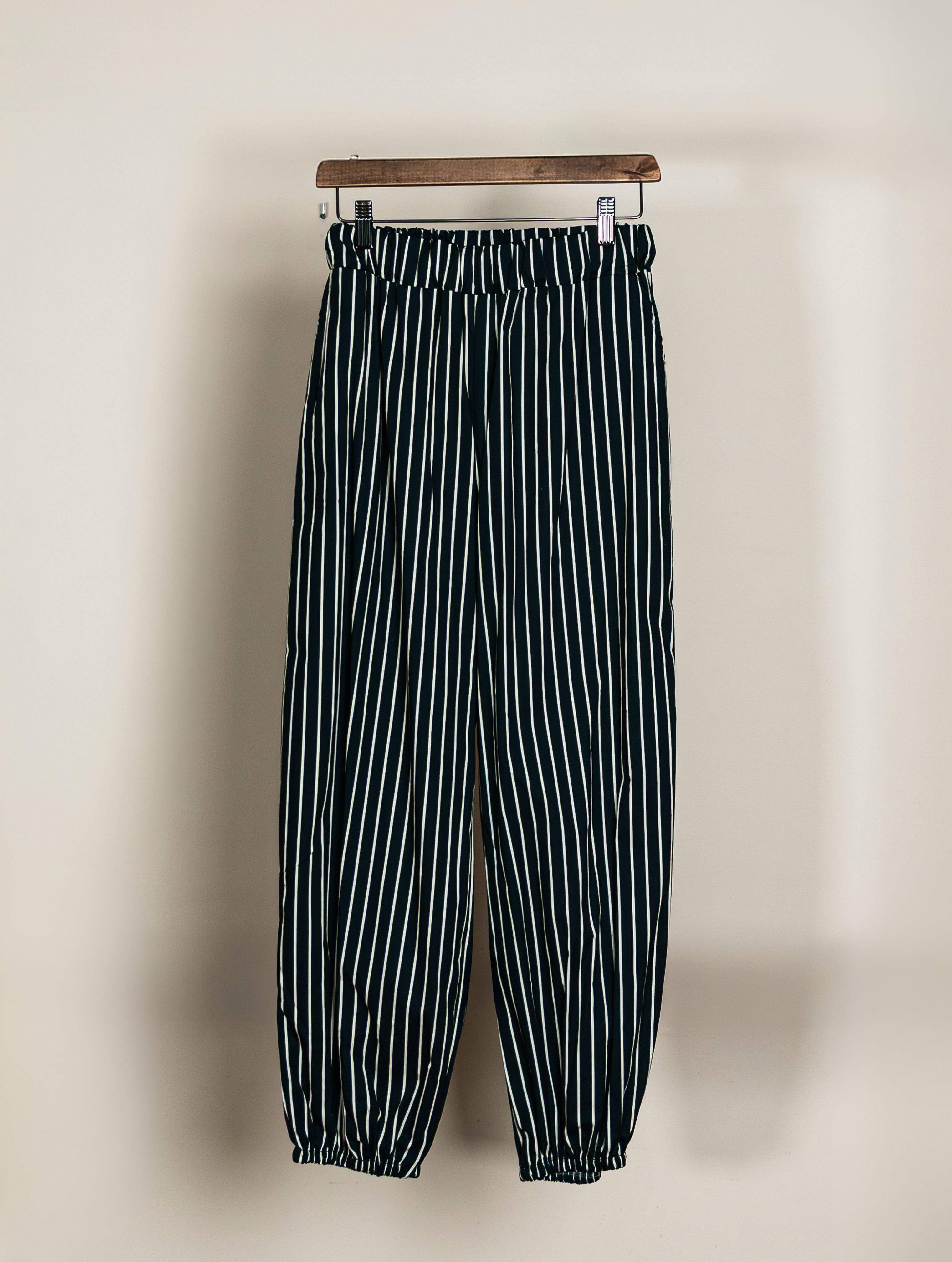 Pantalón Bombacho Rayas Azul Marino y Blanco